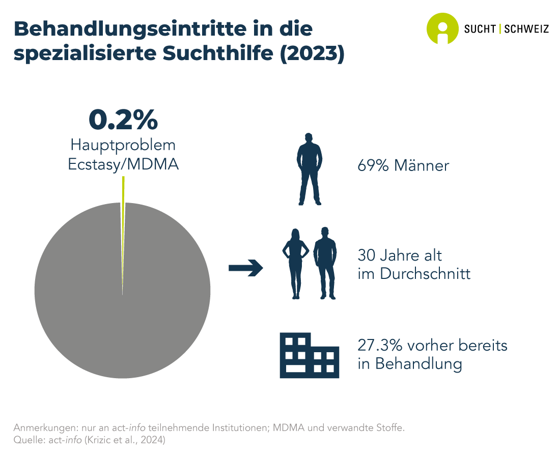 Krizic I., Balsiger N., Gmel G., Labhart F., Vorlet J. & Amos J. (2024). act-info Jahresbericht 2023: Suchtberatung und Suchtbehandlung in der Schweiz. Ergebnisse des Monitoringsystems. Bern: Bundesamt für Gesundheit (BAG). Link