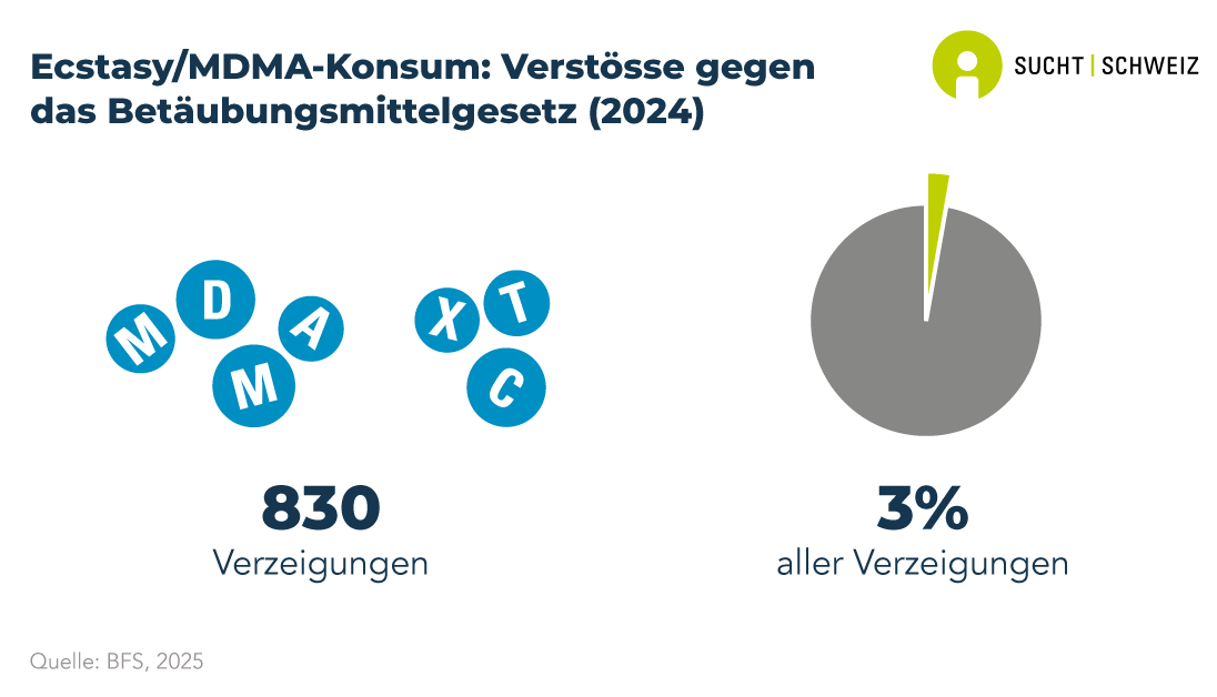 Bundesamt für Statistik (BFS) (2025). Betäubungsmittelgesetz (BetmG): Strafbarer Konsum nach Substanz und Verteilung der konsumierten Substanzen. Polizeiliche Kriminalstatistik.