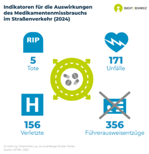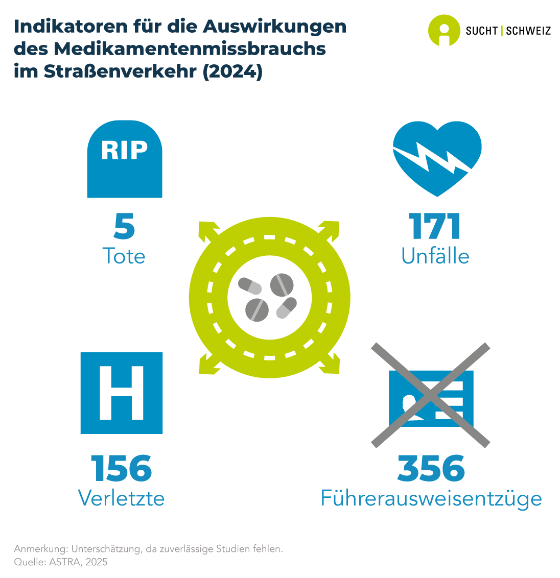 Behandlungen wegen Problemen mit Schlaf- und Beruhigungsmitteln, Auswirkungen des Medikamentengebrauchs auf den Strassenverkehr, Todesfälle.